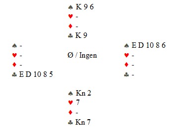 Hadde jeg opprinnelig hatt 7 kortspar sammen med kløver ess uten dame eller 10 burde den unge bergenseren spilt meg inn i spar.