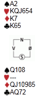 Så skal jeg publisere en mail fra Baard Olav Aasen. BOA er svært kritisk til min skepsis og mener jeg er konservativ og reaksjonær. Det har han både rett og feil i, men når jeg ser fasiten han kommer med blir jeg enda mer sikker i min sak. Bridge er vanskelig nok i seg selv om en ikke skal legge dype feller for seg selv og makker. Nesten så jeg mener at en legger opp til å skyte seg selv i foten. BOA kommer til å gå fra konseptet når han ser hva jeg mener, men jeg stikker fingeren i jorda og sier at vi er ikke bedre enn det vi presterer ved bordet. Uansett hvor lange og flotte systemkompendier vi har.