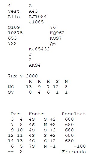 De "norske" parene har kommet godt i gang på de 16 første spillene og mest imponerende er Thor Erik og Thomas på DeButton med ledelse 61-37 mot Fleicher. Schwartz (Boye og Silla) og Monaco leder også, men mer knepent.