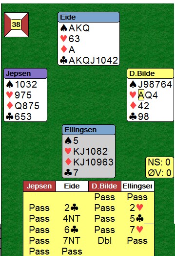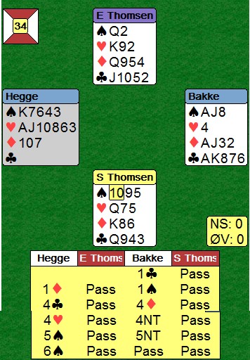 Skulle dessuten makker har svake kort med spar, da spiller du fort langt der også, med tanke på at du har 3 korts støtte til makker...... Har makker svake 2 i hjerter for multi åpningenn sin, da står det minst Slem andre veien....