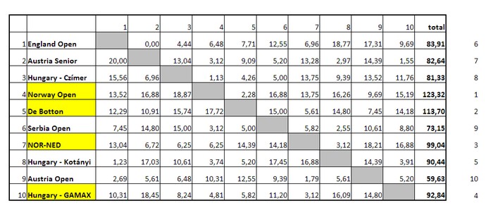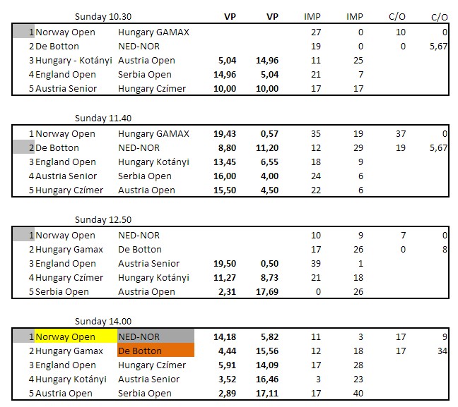 Hjemmelaget fra Ungarn ble overkjørt i semifinalen og da var det klart for NOR/NED i finalen for Thomas, Thor Erik, Nils og Terje. Seier til landslaget med 16 IMP.