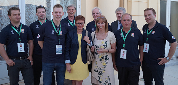 I kveld er det først Captain's Meeting hvor alle kapteiner får beskjed om rutinene for mesterskap, så åpningsserimoni kl 19:30. Her er den kroatisk presidenten anmeldt, så ingen slipper inn etter 19:15. Jeg regner med at vi ser Erna Solberg til stede i Tromsø neste år når vi skal arrangere Europamesterskap, men tror kanskje sikkerhetsoppbudet blir litt mindre. Selve spillingen starter i morgen kl 10:00 for seniorene og kl 14:30 for åpent- og damelaget.