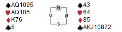 Boye og Espen er snart klart til å starte den store lagturneringa, Spingold. Jeg er ikke helt sikker når kvalifiseringa starter, men på onsdag skal det være 32 lag igjen. Da sendes det på BBO og vi håper lag Schwatz vises der. I tillegg vil det forundre meg om ikke Tor og Geir stiller for Zimmermann. I menyen til høyre er det link til resultater.