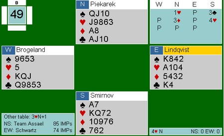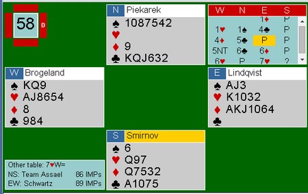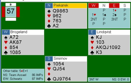 Så skal jeg forsvare Vennerød. Jeg kjenner ikke rammebetingelsene hans godt, men norske bridgespillere konkurrerer med de som har bridge som jobb, ikke hobby. Derfor er det en eneste måte å komme tilbake til toppen på. Det er å spille lange, harde internasjonale bridgeturneringer. Mot de aller beste. I dag er det kun Boye og Espen som gjør dette, Hoftaniska - Charlsen i en viss grad.