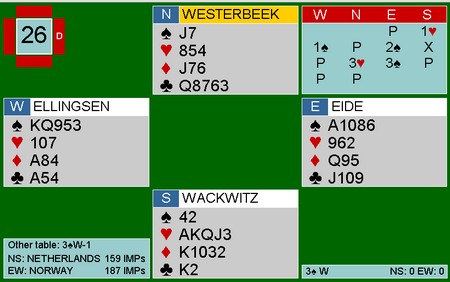 Ja, det er noen som har sagt at det svenske mesterskapet er så mye bedre arrangementteknisk, men det kan jeg ikke helt forstå. I år var den største tabben at vi glemte å skru av en BridgeMate-server som ikke var i bruk. Da ble det litt kluss, men ikke verre enn at vi kjapt retta opp. Ellers kan jeg ikke se at noen har vesentlige ting å klage på. Turneringene starter til avtalt tid og slutter når de skal. At folk vaser og virrer i ganger og toaletter når du skulle sittet ved bordet, kan da ikke vi alltid henges for?