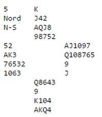 Makker kan selvsagt ha denne hånda: DJ10,Kx,EKx,xxxxx. Ikke en eneste bortkasta honnør. Treffer du makker med slike kort, bør du levere inn LOTTO samtidig fordi da er det din dag. Og faktisk kan du likegodt melde 7kl fordi sparkappen går på slike dager.