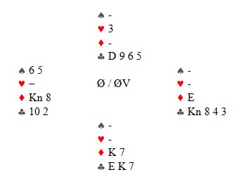Hvis du mener at en treningskamp som dette skal være prikkfri så trenger en vel ikke noe trening? Det er i slike kamper at en får belyst problemstillinger som en ikke har tenkt på før. Og dette er en problemstilling som krever litt mer enn å si at 1KL 3SP er 1444 og krav til utgang. Jeg vil gjerne belyse hvordan jeg ser på dette. (Kortene er i artikkelen under denne)