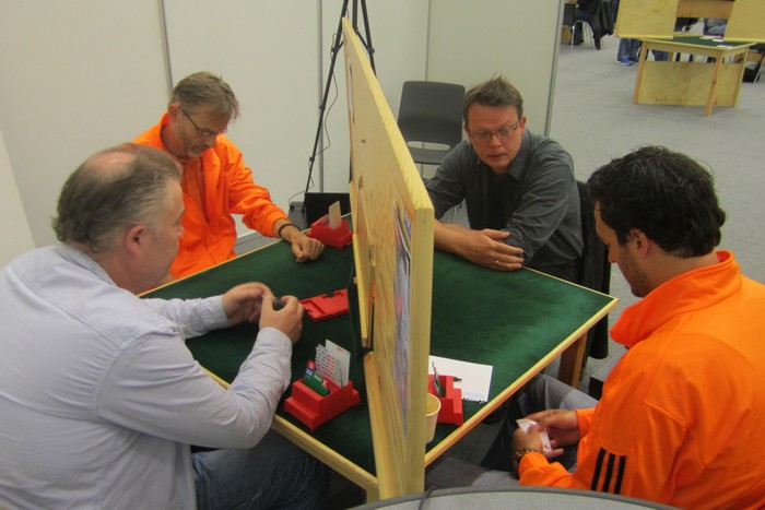 På det andre bordet spiller nederlenderen ikke så bra. Han stikker kløveren og fortsetter med spar ess og spar til stjeling. Så kløver mot bordet, men Børre bare stikker og spiller trumf til bordets ess. Kløverknekten kan Ole i syd stjele og de ti stikkene har blitt til ni.