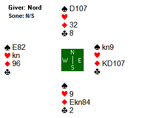 Jeg har vært med på noen diskusjoner med bl.a. Hoftaniska og landslagssjef Wennerød om begrepet momentum i bridgesammenheng. Er det i de hele tatt noe reelt som påvirker begivenhetenes gang? Slik jeg forstod landslagssjefen er det bare tull. Andre, og spesielt spillere som har vært i mange kampsituasjoner i store mesterskap føler imidlertid det er noe med det der "momentum" som ikke kan forklares. Det har kanskje mest med psykolog og selvtillit å gjøre. Hvis mån får et voldsomt gave-spill kommer det som regel flere gode spill i kjølvannet av det, og motsatt, når ting går galt kan det føles som om det er det samme hva man gjør i fortsettelsen, alt går galt. Selvsagt er det ingen rasjonell forklaring på dette, og Wennerød har nok rett i at det først og fremst handler om å spille ett spill av gangen.Likevel, jeg håper på et positivt momentum for alle de tre norske lagene utover denne uken. La oss gjerne få noen spill av det jeg nå skal fortelle, og aller helst tidlig i kampene. Spillet er fra seniorenes kamp mot Polen, og det kom (dessverre) i det nest siste spillet. At det ble fulgt opp med et stort norsk gevinstspill i det siste spillet beviser vel ingen ting med hensyn til momentum, men...