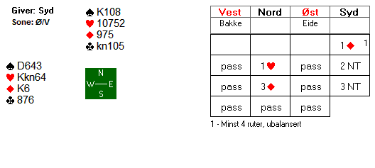 "Grunnen til at jeg meldte 4kl og satte ruter som trumf var fordi jeg var interessert i å vite om Sofie hadde ruter kongen når jeg spurte i 4NT i tilfelle det sto 7sp."