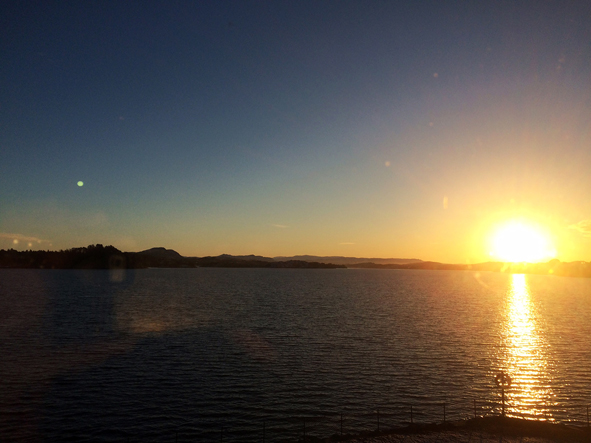 Fantastisk soloppgang over Herdla då vi var der i januar 2016. (Foto: Marit Havelin)