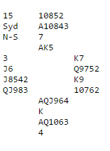 Liv Marit forteller: “Spilleføringen gikk fort, Markus tok sparfinessen og noterte tretten stikk for ren kasse. Det som imponerte meg mest etterpå var tankegangen i meldingene. Han var mest opptatt av hvordan vi skulle melde etter Blackwood hvis vi hadde alle nøkkelkortene og trumf dame for å kunne komme oss i storeslem. Jeg gleder meg til fortsettelsen med Markus».