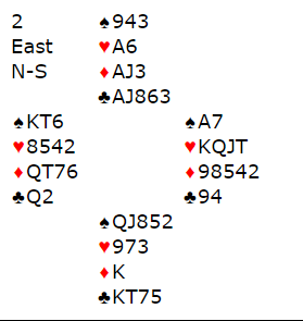 Omtrent halvparten av lagene var i utgang. To steder ble det tre bet i 3 grand etter hjerter dame i utspill fra syd da spillefører forsøkte ruterfinessen.