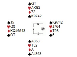Spill 27 (vridd så spillefører er syd)