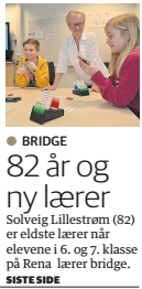 Og det har da lyktes noen steder! Både i Bergen og Engerdal som ble nevnt i et tidligere innlegg her i bloggen, og enkelte andre steder har bridgeundervisning i skolen foregått. Jeg fikk for litt siden informasjon om vellykket satsing på Åmot Barneskole på Rena.