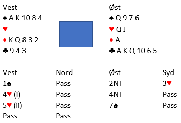 Øst får her den beskjeden han liker aller mest fra makkerens 4 hjerter, og svarhånden kan kontrollert melde en nydelig storeslem til tross for tre bortkastede poeng i hjerter.