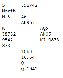 Det er en glimrende lilleslem, og ikke så veldig dårlig lilleslem. Men i 6 ruter er det dog en fare for å gå bet etter hjerterutspill. Da er det nesten slik at det ikke er så mye dårligere sjanser i 7 ruter. Og Polakkene meldte 7 ruter! Den var avhengig av å løse kløverfargen. Det er tre mot to odds i favør av esset fulgt av finesse fremfor å toppe etter damen dobbel, og polakken gikk to bet da han tok kløverfinessen og hadde fått hjerterutspill.