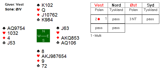 Den polske damen hoppet derimot rett i 3NT!