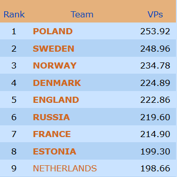 Veteranene trenger en grei dag i morgen for å sikre VM-billett. Foreløpig er avstanden ned til "VM-streken" på 10 VP. Opp til medalje er det drøyt 11 poeng. Ikke helt umulig med full klaff i morgen!