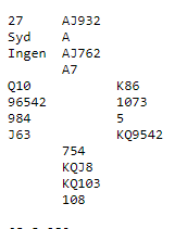 Å ende opp i 6 ruter er mer naturlig siden de ikke finner ut at det mangler ett nøkkelkort og spar dame. Den slemmen er en del bedre da det er visse tilleggsjanser for innspill for å unngå to spartapere etter å ha tatt ut trumfen og eliminert hjerter og kløver. Slik det satt føk 6 ruter hjem overalt hvor den ble meldt (6 av 20 bord).