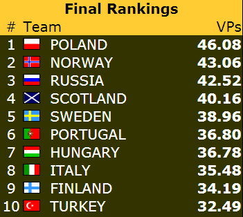Norge lå lenge under stort mot Wales, bl.a. etter at Boye og Espen meldte en god slem der det dessverre satt surt, men så snudde Norge kampen med en god spurt: