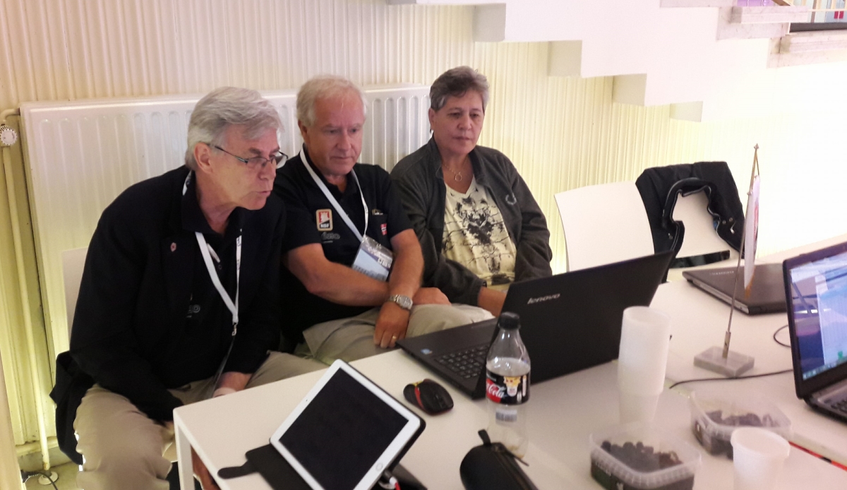 Det norske støtteapparatet følger spent med på BBO. Fra venstre kaptein Christian Vennerød, sportssjef Jon Egil Furunes og Jon Egils kone Trine.