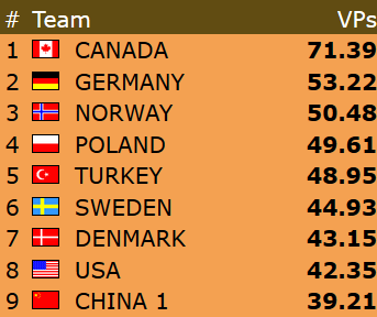 Norge - Canada 3,63 - 16,37