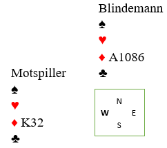 Det gikk altså ruter knekt, konge og esset fra nord. Nå ser du at spillefører ikke kan få mer enn det ene stikket.