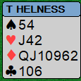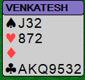 Det er to kløvertapere, og spillefører må tippe hvem som eventuelt har hjerter ess dobbel for å unngå to hjertertapere.