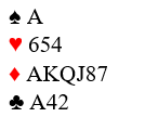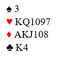 Dette er N/S kort som ikke er så enkle å melde hvis motparten er med i meldingene, noe som skjedde ved endel bord.