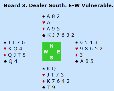 Ikke alle N/S-parene var i utgang med dette, men det er ganske enkelt å vinne 3 grand, spesielt med den snille kløversitsen. Det ble både ett og to overstikk flere steder.