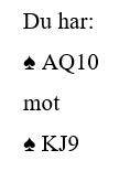 Syd har nieren singel eller dobbel, og nord har K-10 femte eller sjette.