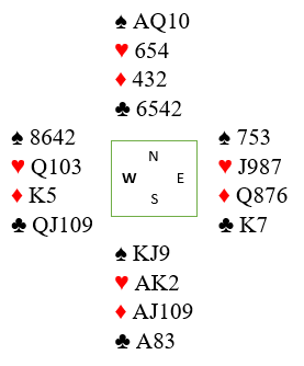 Hvis du derimot behøver mange inntak til syd kan fargen spilles slik at det blir bare en gang du havner hos nord (esset kan ikke stikkes over), og to inntak til syd, for eksempel ved å starte med esset, så stikke over damen med kongen, og senere stikke over tieren med knekten. I det spillet du nå skal få se var det viktig å kjenne igjen denne "uinteressante" fargens potensiale: