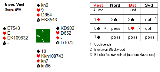 Ruter 8 gikk via knekten og kongen til esset på hånda. Deretter fulgte ess-konge i hjerter og hjerter til stjeling.