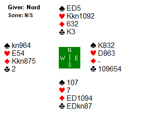 Vest spilte aktuelt spar knekt inne på hjerter ess. Da hjerteren satt rundt hadde Christian altså resten (2+3+1+5).