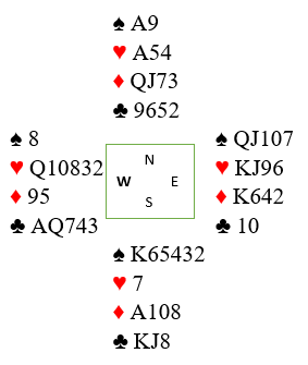 Ganske mange stoppet i delkontrakt. Det er kanskje ikke bare enkelt å melde ut i praksis. Men om vi ser nord og syds kort mot hverandre er det en sjanserik utgang. I praksis står den på å løse trumfen med en taper, men det er klart at faren for ruterstjeling er overhengende.