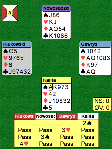 Klukowskis 3 hjerter benektet major, østs 4 kløver var naturlig, og 5 grand «pick a slam».