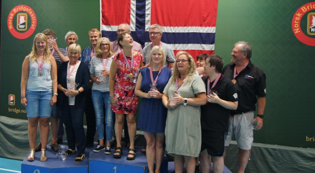 Her synes jeg vinnerlagets Åse Biribakken-Helge Mæsel meldte godt og logisk i kampen mot lag Erichsen (Helen og Espen Erichsen sammen med Tor og Gunn Helness) som ble nr. 4 til slutt, like bak bronseplassen:
