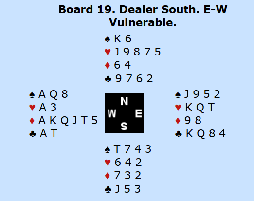 Litt senere i kampen kom det en potensiell slem til. Denne gang var det nord-syd som skulle teste meldeformen i slemsonen: