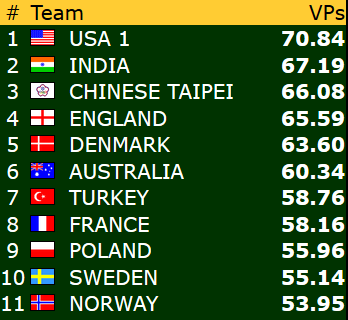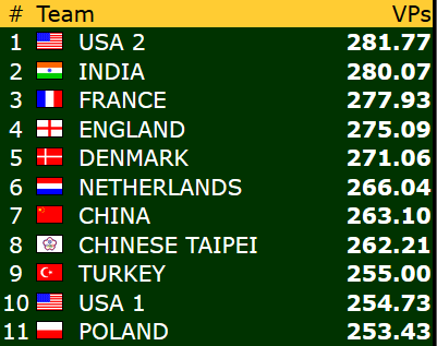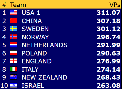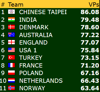 Etter 15 runder spilt torsdag er Norge nr 9 i åpen klasse mens damene ligger på en flott 4. plass mens veteranlaget nå ligger helt nede på 19. plass. 8 runder gjenstår og vi kan med flaks være kvalifisert for sluttspill i minst en gruppe- håpet er klaff i to!
