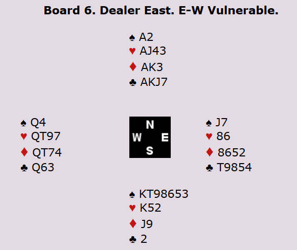 Den israleske spilleren spiltye i stedet spar til finesse. Han håpte nok på 4-2 med Dx eller Kx i Nord. Det vil bare gi en taper i trumf, men her holt ikke den planen og det endte med 1 bet. 12 imp til Norge.