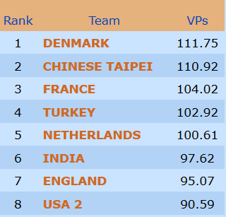 Her er resultatene for de norske lagene i tirsdagens andre runde, som er den åttende runden totalt i mesterskapet:
