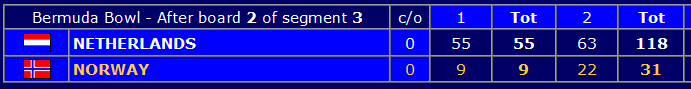Tredje sett starter klokka 10:30, og overføres direkte på BBO. Norge stiller med Boye - Espen og Nils - Ulf.