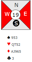 Vi som fulgte sending på BBO så at hvis Øst klarer å starte med ruter og dermed ta to stikk må Allan etterpå gjette rett i hjerter for å vinne. Men da Øst valgte å spille ut kl J kom claim av 10 stikk ganske fort. Ut-trumfing og på 5. kløver ble var Alexs sak av ru 10 på hånden. Dermed alltid 10 stikk, 11 om hjerteren gjettes rett. +10 imp til Norge som til slutt vant oppgjøret med 9 imp. Close race altså!