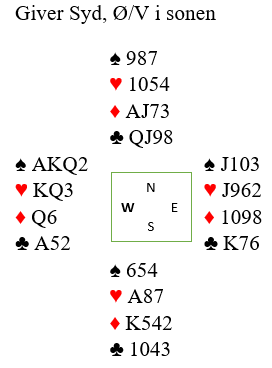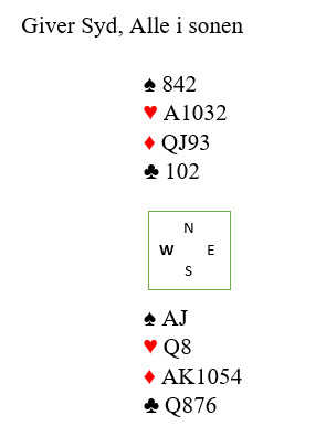 Et spill fra Torsnes BK denne uka. Det kan være problem med å bestemme beste kontrakt og spilleplan. Prøv deg selv med skjulte kort i Nord og Syd. Ø-V er i faresonen.