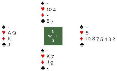 Spillefører stakk med spar konge i andre stikk og spilte hjerter til nieren fra nord, damen og esset. Derfra kom spar som nord trumfet med hjerter 10. Nord spilte deretter liten kløver. Jeg kan røpe at kontrakten nå står om hjertersitsen tippes.