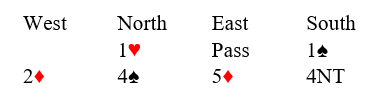 Jane Dawson (nord) åpnet med 1 hjerter og jeg sa 1 spar før hun kom tilbake med 4 spar.