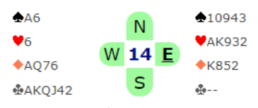 Makkeren som kunne hatt 6 lusne poeng viste tre ess, og åpneren hoppet rett i 7 hjerter.