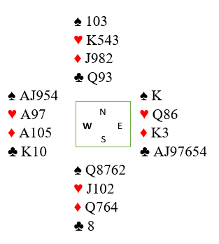 Å satse på godspilling av sparfargen er en god plan. Allan spilte kløver ess, spar konge og kløver til kongen. Da viste det seg at nord hadde startet med trumfdamen tredje og nå hadde krav på trumfstikk. Fortsettelsen ble spar ess med avkast av en hjerter, så spar til stjeling. Sitter sparen 4-3 (eller damen dobbel) er alt i orden. Selv om en av dem har damen fjerde i spar får spillefører satt opp den femte sparen som gir avkast for nok en hjerter, og forsvaret får kun trumfstikket. Dette førte ikke frem siden hele spillet så slik ut fra start: