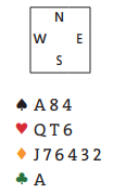 Syd vet godt at utspillet er et skudd i blinde, men å spille ut spar ess gjør at han har to skudd i magasinet!